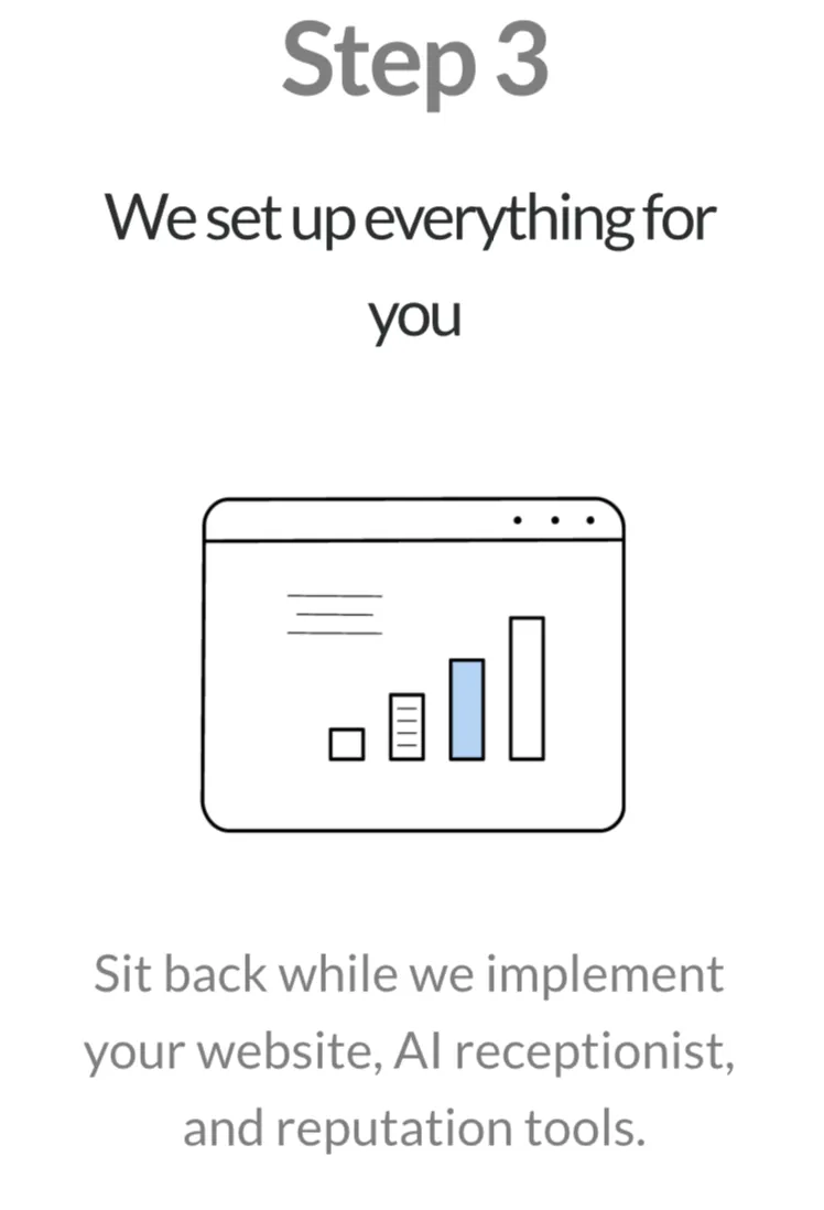 Sit back while we implement your website, AI receptionist, and reputation tools.
